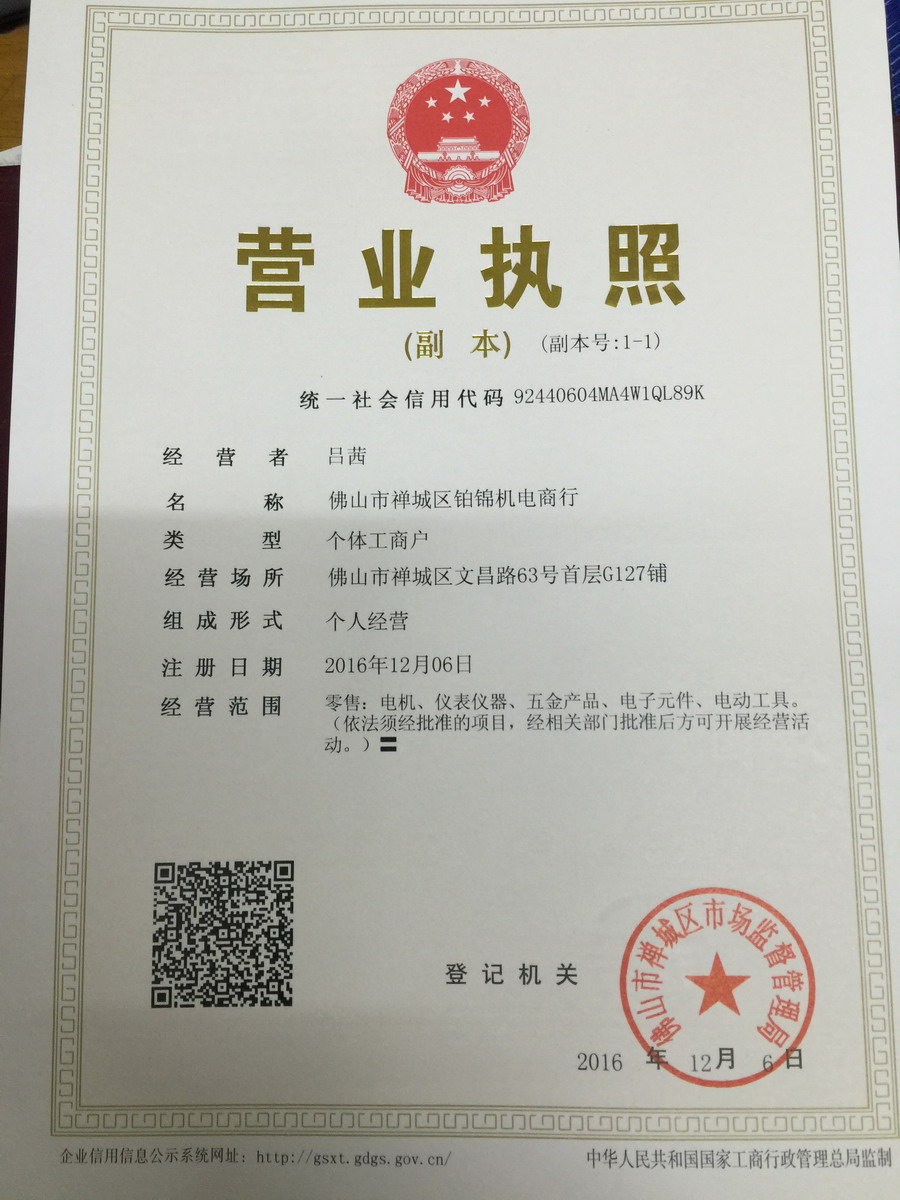 佛山市禪城區鉑錦機電商行