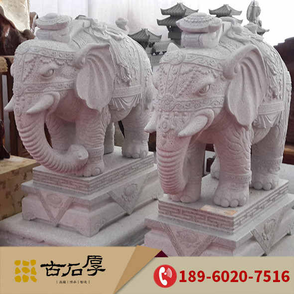 石雕大象:石雕大象是智慧、力量、團結的象征,具有聚財、納福、鎮宅、辟邪等吉祥的風水作用。大象善于吸水,水為財,凡家居大窗見海或水池,稱之為“明堂聚水”,企業公司若擺放一對大象,則大財小財均為己所納。象之稟性馴良,放在家中吉祥如意,如將之放在室內財最盛的地方,則全家人受惠。