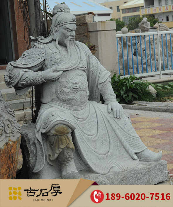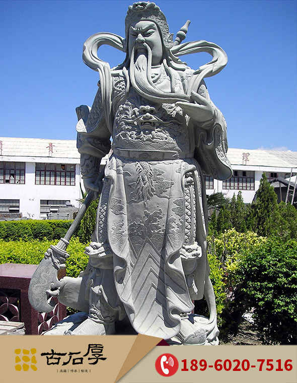 石雕關公造型俊美,形象鮮明,受到人們的普遍喜愛。關公代表了忠、義、信、智、仁、勇,這一藝術形象國人推崇備至,這在現代社會具有極大的商業價值和社會意義。人們敬奉石雕關公,其實質就是推崇關公的忠義誠信精神。人們把關公奉為神明和財神,就是想誠信做人做事,想得到關公的庇佑,獲得財富,吉祥和平安。隨著關公文化精神的推廣,石雕關公的商業價值也一路飆升,形成了一個巨大的市場。它不僅僅帶動了商業的繁榮,也帶動了石雕業的復興與發展,深刻體會到挖掘名人雕塑的巨大意義,在這些歷史名人雕塑的世界騰飛翱翔。