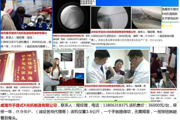 威海市手提式X光機制造有限公司,聯系人:程經理,電話:13806318375.該機售價:36000元/臺,便攜式高清DR檢視儀,售價:25萬元/臺,保修一年,終身維護,(誠征各地代理商)。該機僅重3.6公斤,一個手就提得動,無需暗室,一按按鈕就能看到骨頭。低劑量手提式X光機是我單位最早開發研制的高新技術產品,是目前國內外最小的X射線診斷設備.我單位是全國目前**的便攜式X光機專業生產廠家,三證齊全,品牌:厚華。同時進行X光機的DR升級改造。同時生產銷售:安全屏蔽X射線的鉛防護產品系列:鉛防護帽,鉛防護服,鉛眼鏡等等。更多信息登陸:http://blog.sina.com.cn/weichengduo.,手提式X光機的性能參數說明和型號