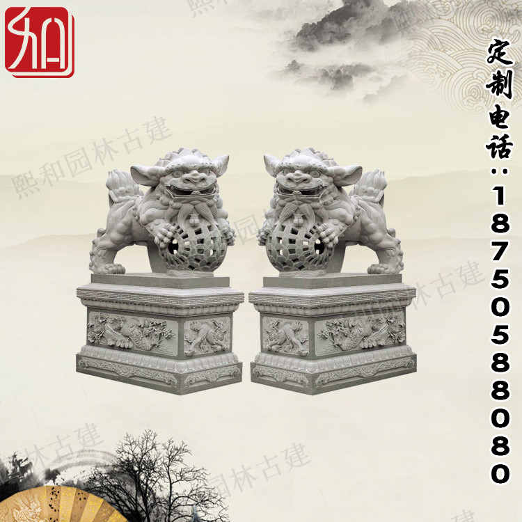 石獅子,是中國傳統文化中常見的辟邪物品,以石材為原材料雕塑成獅子的形象,具有藝術價值和觀賞價值的雕塑品。最早的石獅是東漢高頤墓前的石獅。是中國傳統建筑中經常使用的一種裝飾物,在中國的宮殿、寺廟、佛塔、橋梁、府邸、園林、陵墓及印鈕上都會看到它。但更多的時候,石雕獅子是專門指放在大門左右兩側的一對獅子。其造型并非我們現在所看見的獅子,可能是因為中土人士大多沒有見過在非洲草原上的真正的獅子,但也有說法是西域獅與非洲獅體態不同的緣故。